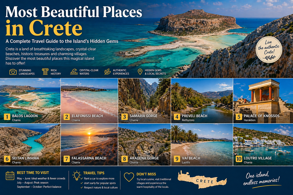 This complete, SEO-optimized guide explores the most beautiful places in Crete, from iconic landmarks to lesser-known locations that many visitors miss.