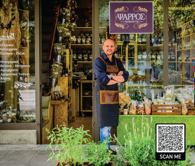 The physical store of Psarros Aromata Gis is located in the center of Chania, at 14 Koraka Street, where visitors can explore a wide variety of products and receive personalized advice.